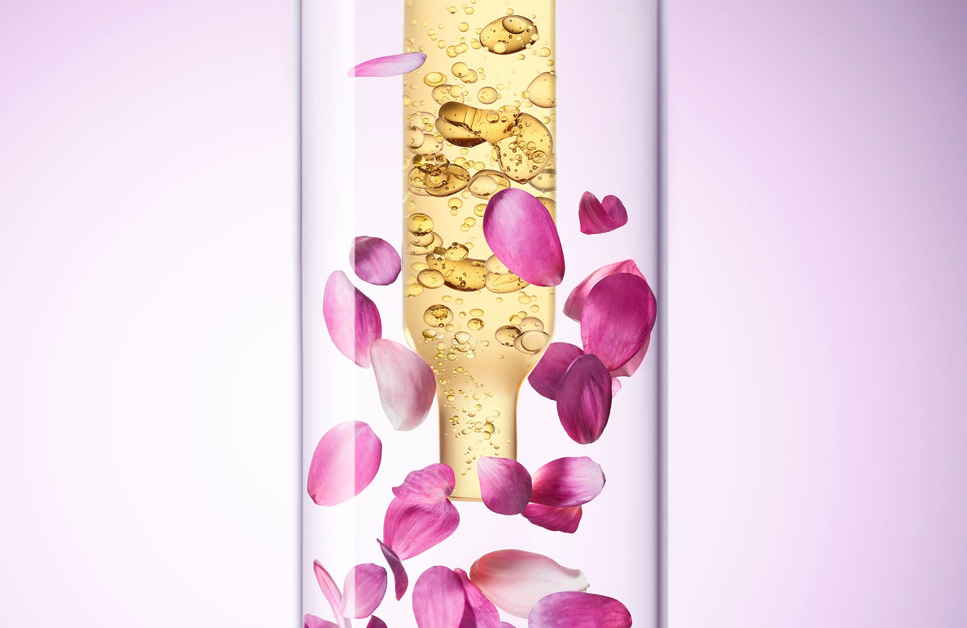 La Investigación NUXE se ha interesado por las excepcionales propiedades del Aceite fermentado de Camelia Rosa. La fermentación produce un glicolípido con un potente efecto reparador. Una vez fermentado, el aceite fermentado de Camelia Rosa presenta además una textura más fina, lo que hace que se integre en la fibra para liberar todos sus beneficios. Está demostrado: aporta 2 veces más nutrición y reparación al cabello⁽3⁾.