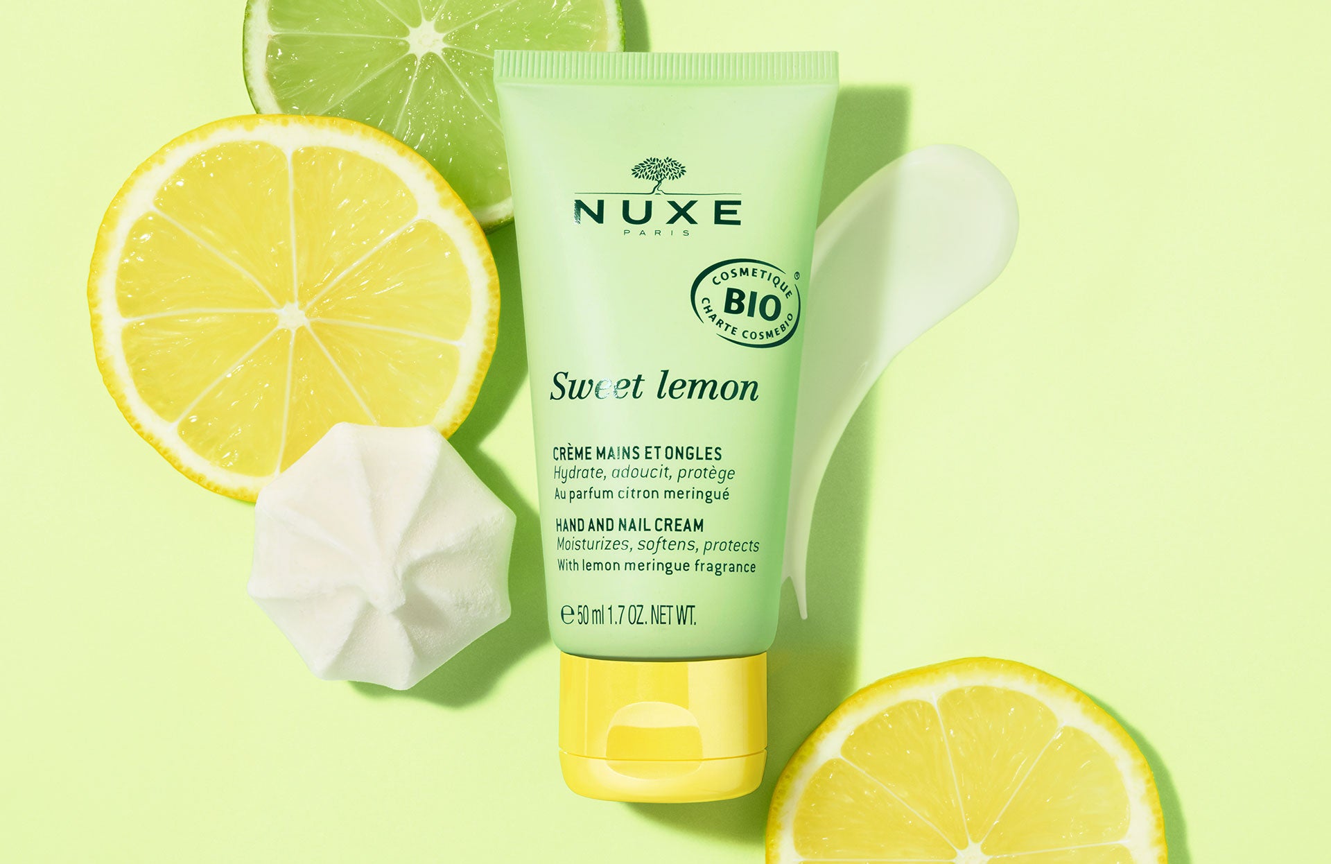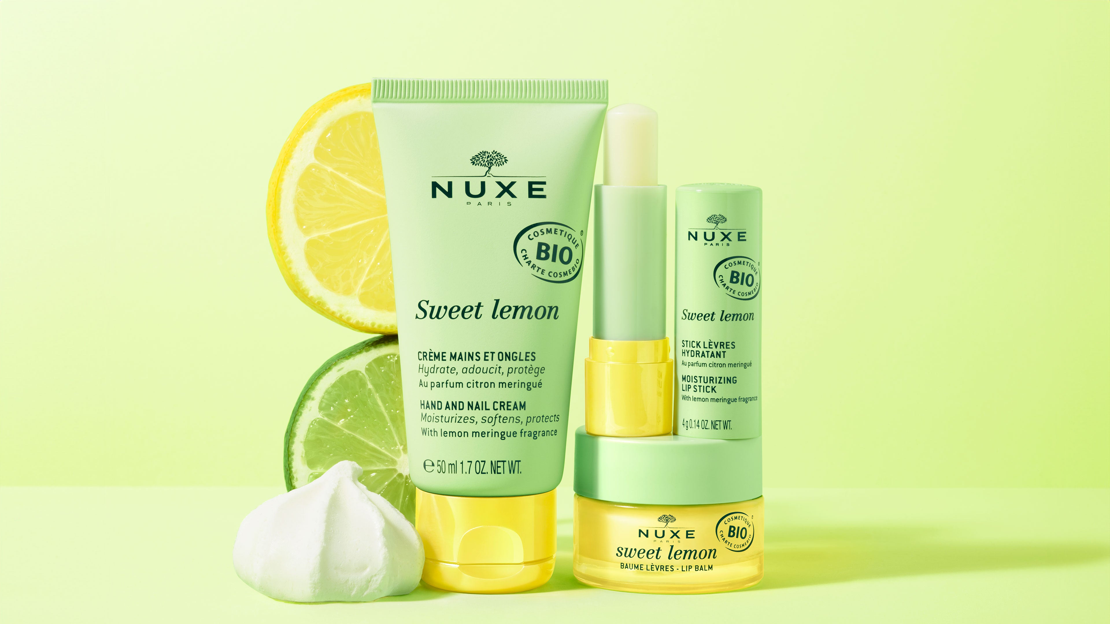 Aporta un toque de exquisitez a tu rutina de belleza con estos tratamientos para los labios y las manos veganos⁽¹⁾, con certificación bio y una deliciosa fragancia de merengue de limón. Especialmente expuestas a las agresiones externas, estas dos zonas del cuerpo tienden a sufrir sequedad con mayor rapidez. El trío de tratamientos Sweet Lemon nos descubre fórmulas concebidas para hidratar y suavizar las manos y los labios, proporcionando un momento de auténtica suavidad.