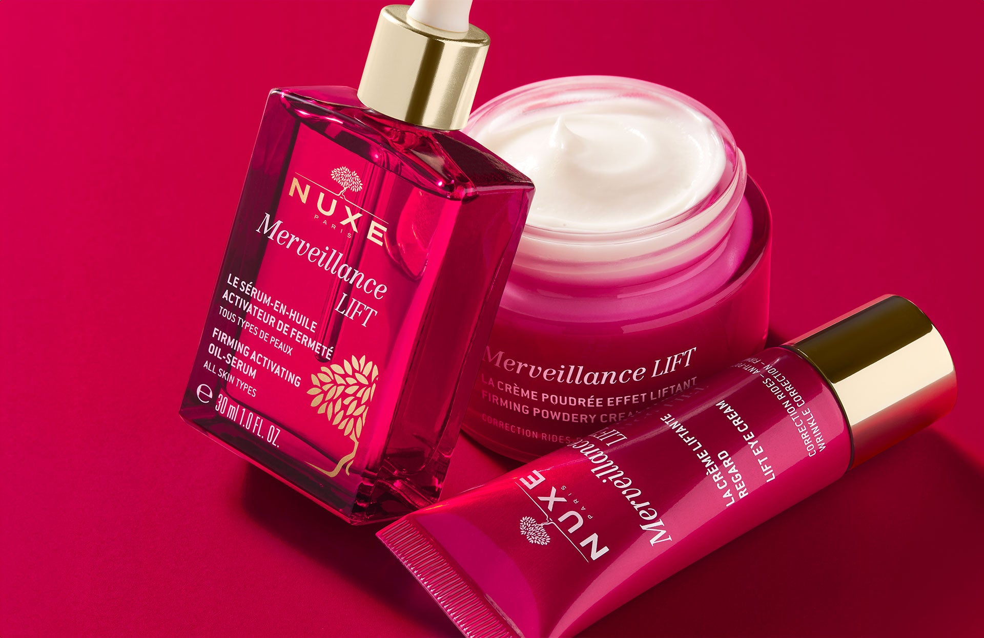 La Investigación NUXE identificó la eficacia de las semillas de mimosa en un producto antiarrugas, innovación patentada que dio origen a Merveillance. Durante los 15 años siguientes, la gama no cesó de reinventarse en corrección de arrugas. En 2021, NUXE presentó Merveillance LIFT, tratamientos con aceite de microalgas. Este aceite, obtenido mediante extracción «green», concentra en cada gota el poder de 4000 millones de células activas.