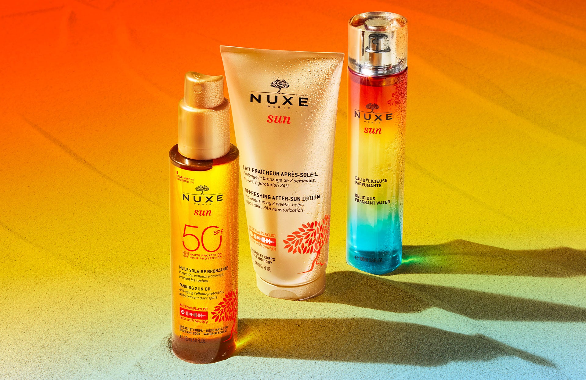 El Laboratorio NUXE lanzó una gama solar y demuestra que los productos de protección también pueden ser glamurosos. NUXE Sun destaca por sus texturas adictivas y su fragancia de notas embriagadoras. Los aceites solares causan sensación, al igual que la loción para después del sol: son el n.° 1 de su categoría⁽⁸⁾ en las farmacias de Francia. Eau Délicieuse NUXE Sun es también el perfume más vendido en las farmacias ⁽⁹⁾ de Francia.