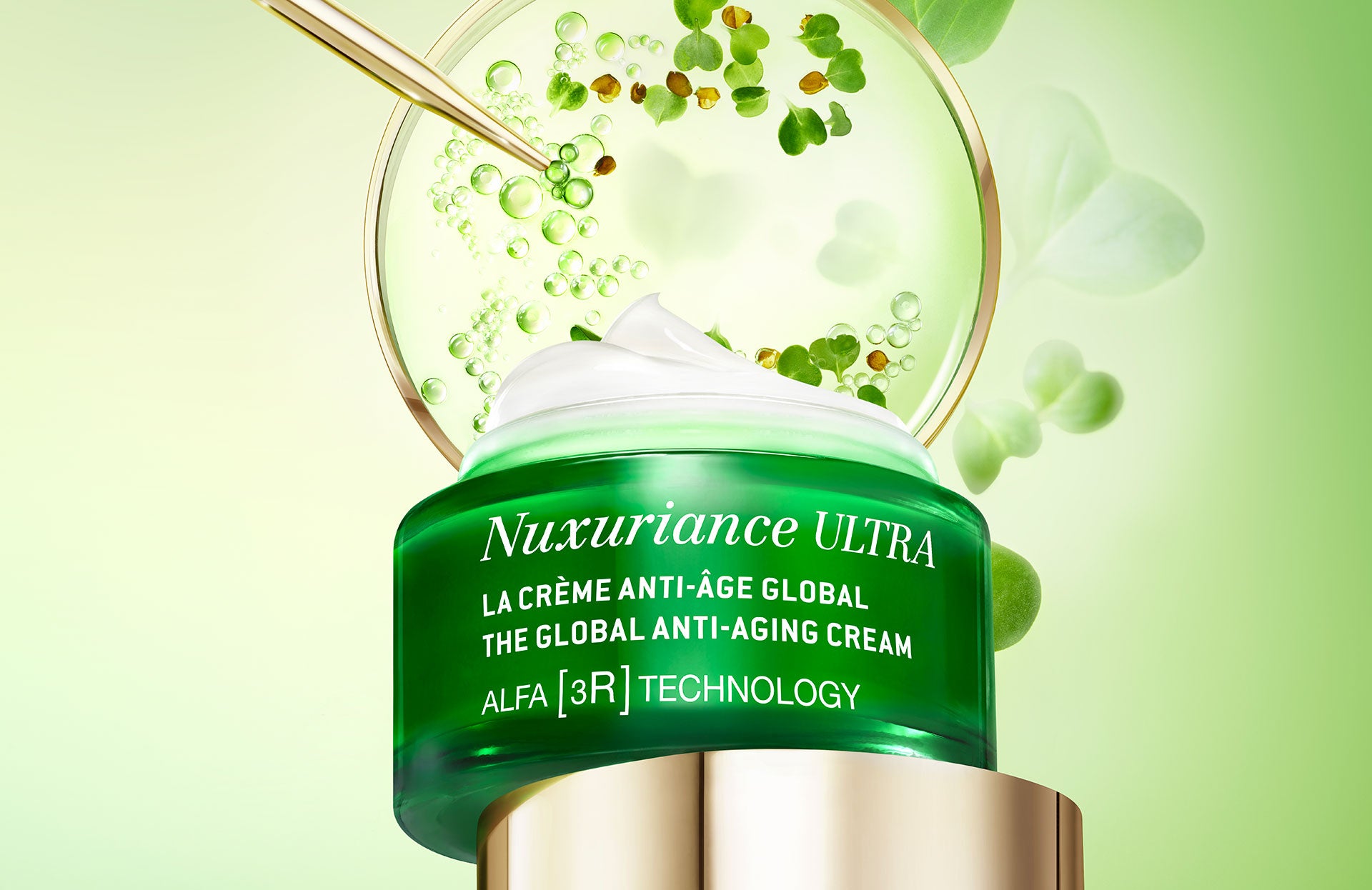 El Laboratorio confirmó su excelencia en el cuidado facial con esta innovación antiedad global a base de ingredientes vegetales patentados. Ofrece a las mujeres exigentes una eficacia probada en cuanto a la densidad de la piel y las manchas. En 2024, la gama se convirtió en Nuxuriance Ultra Alfa [3R], integrando una tecnología más eficaz que el rétinol ⁽⁷⁾ en 3 acciones en la piel. El no va más en antienvejecimiento.