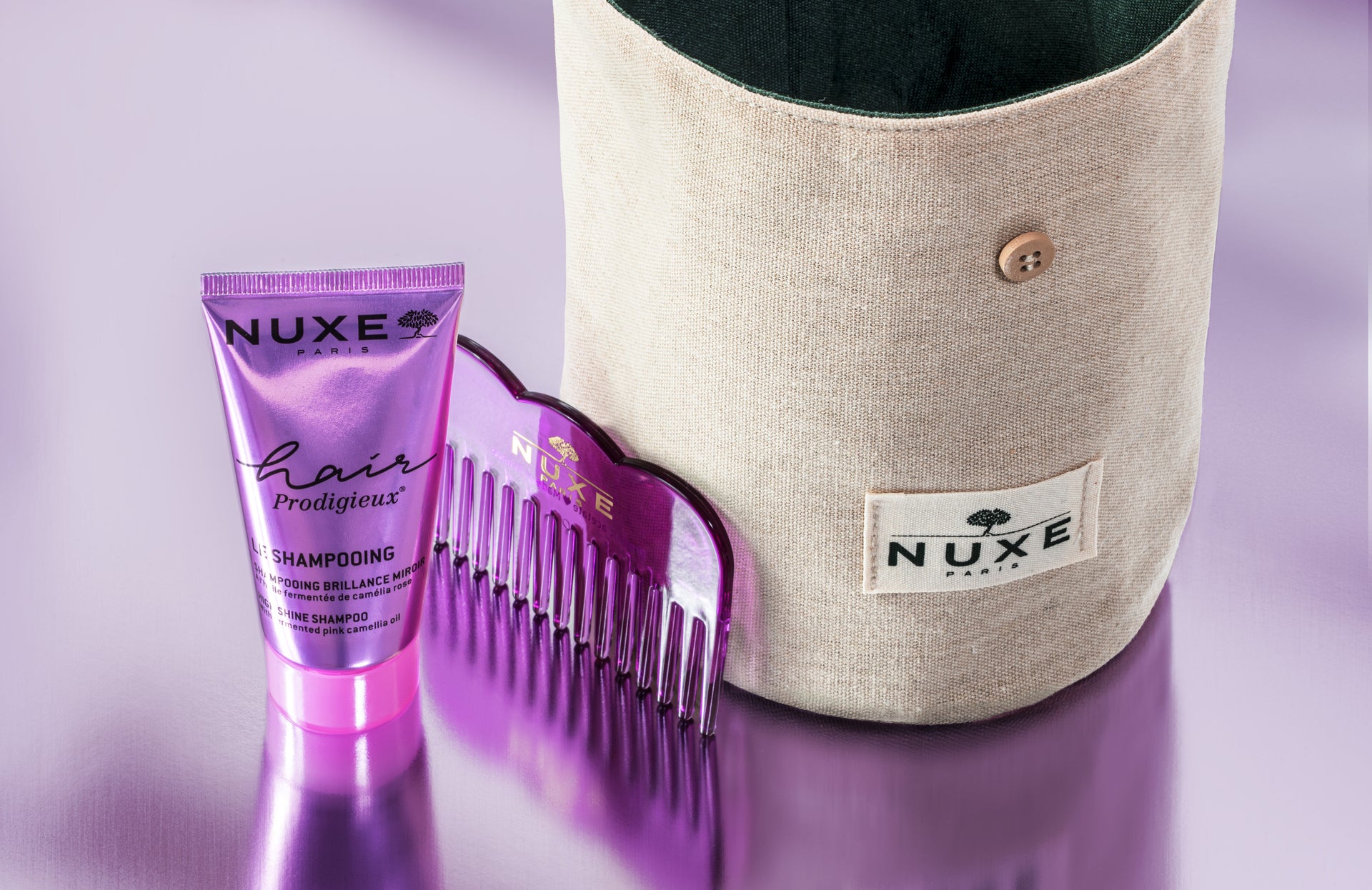 (2) Un peigne NUXE (dimensions : 9,5 x 5,8 cm, matériaux : Organic Acetate) et un shampooing Hair Prodigieux® 30ml offerts dès 60€ d'achat à partir du 1er septembre 2025 sur le site fr.nuxe.com, jusqu'à écoulement du stock disponible (hors e-cartes cadeaux). Offre non cumulable avec toute autre offre NUXE en cours et valable en France métropolitaine. Photographies non contractuelles.