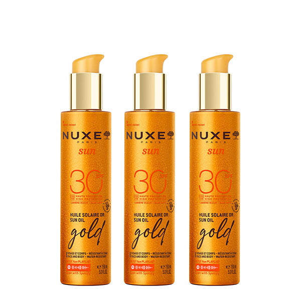Protege tu piel de los rayos del sol a la vez que le aportas una irresistible luminosidad dorada con nuestro primer aceite alta protección con acabado dorado irisado⁽¹⁾.