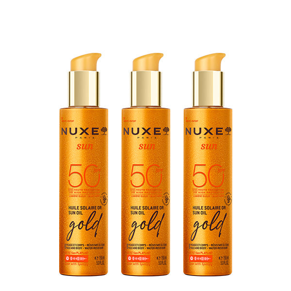 Protege tu piel de los rayos del sol a la vez que le aportas una irresistible luminosidad dorada con nuestro primer aceite alta protección con acabado dorado irisado⁽¹⁾.