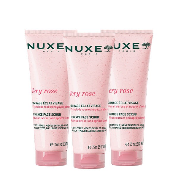 Avec son Gommage Éclat Visage, NUXE répond aux besoins de toutes les peaux, même les plus sensibles. Sa formule crème contient de l’extrait de rose, un ingrédient hydratant et apaisant. La poudre de noyaux d’abricot upcyclés* offre une exfoliation douce qui laisse votre peau nette, éclatante, sublimée, sans sensation de tiraillement. Le grain de peau est affiné, votre peau est adoucie, prête à recevoir les autres soins de votre routine beauté.