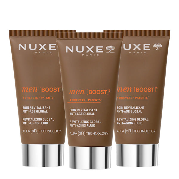 NUXE Men [BOOST]³, la gama experta que combina eficacia y sensorialidad para revelar toda la fuerza de la piel. Con oleo-extracto de corteza de fresno patentado. Además, TECNOLOGÍA ALFA [3R]⁽¹⁾, más eficaz que el retinol⁽²⁾, revitaliza, renueva y rejuvenece la piel.