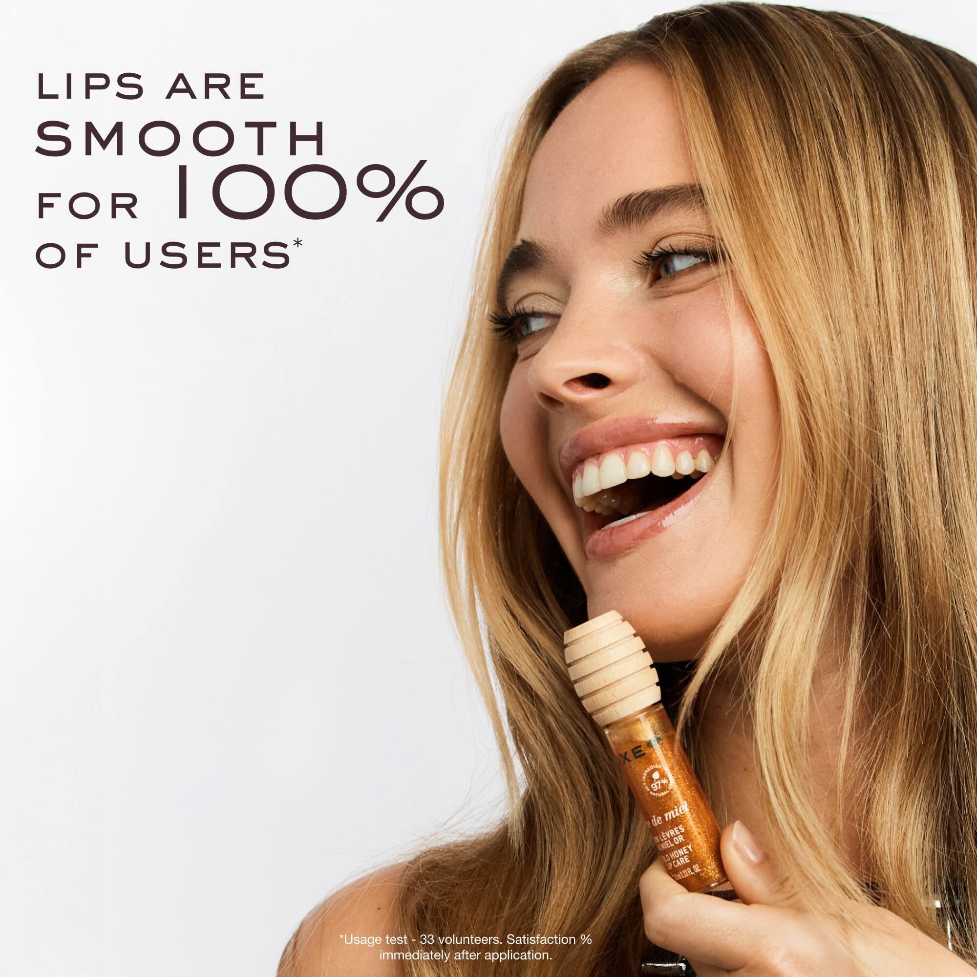 Los labios están más lisos para el 100% de las voluntarias tras la aplicación.⁽¹⁾