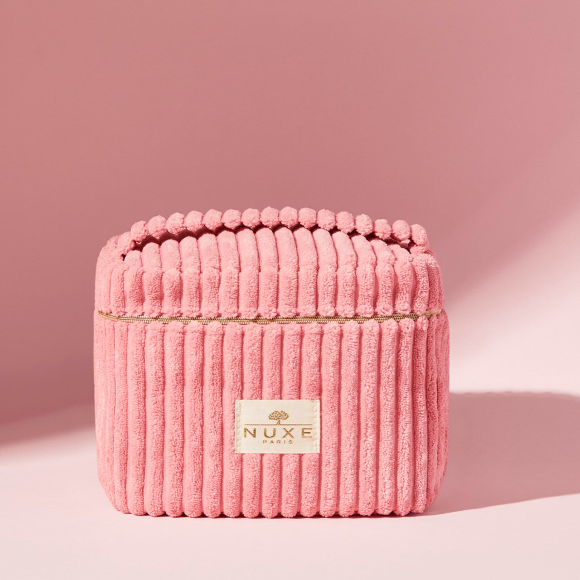 - Vanity de terciopelo rosa – Un estuche elegante y femenino para llevar siempre consigo su rutina Prodigieuse® [HYALU] Boost.